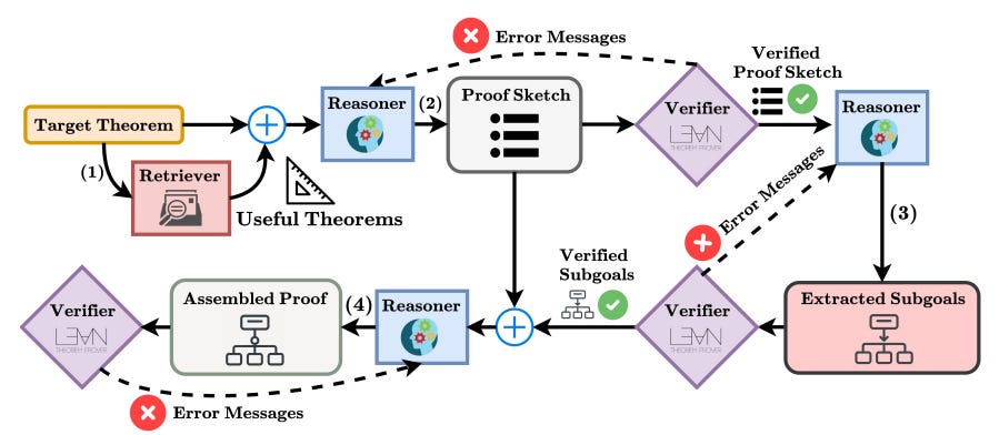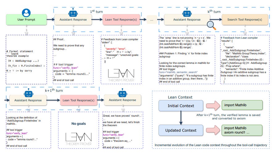 Synthetic data alone is not sufficient. Even with verification, many mathematical problems remain intractable if treated as single-shot generation tasks. The next advance of 2025 addressed this limitation by shifting from monolithic provers to agentic systems that explicitly decompose problems and manage failure.